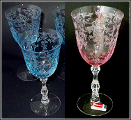 One of the most shabby chic vintage crystal patterns you can have is Forstoria Navarrein clear, shabby chic pink or pretty blue. Sadly, Fostoria closed down just a few years ago, but we’ll always have “Navarre.”See the article: Fostoria Navarre Crystal |